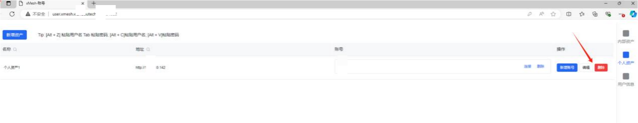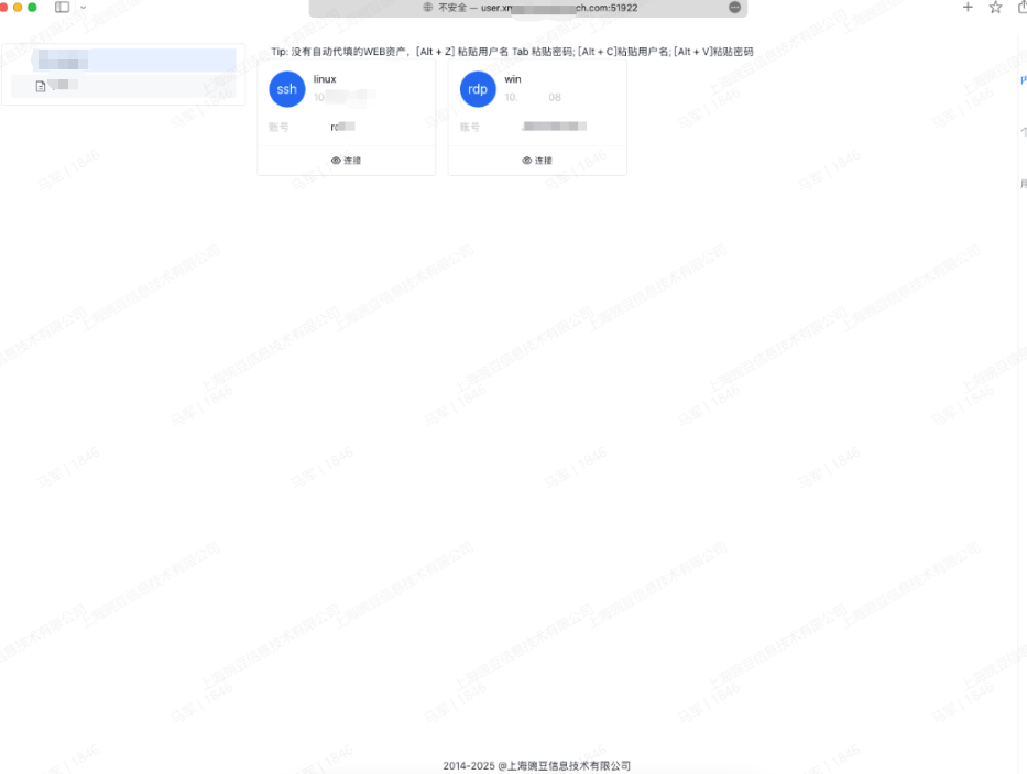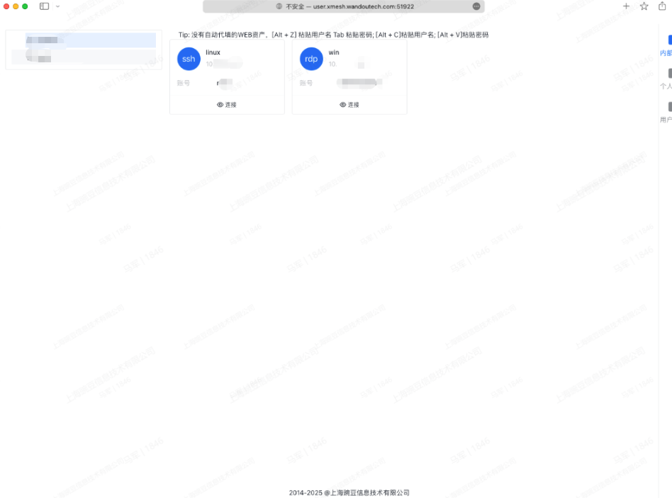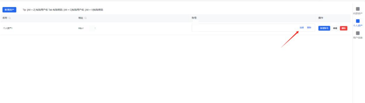 - 内部资产是由管理员授权的资产,可进行连接操作,账密自动代填