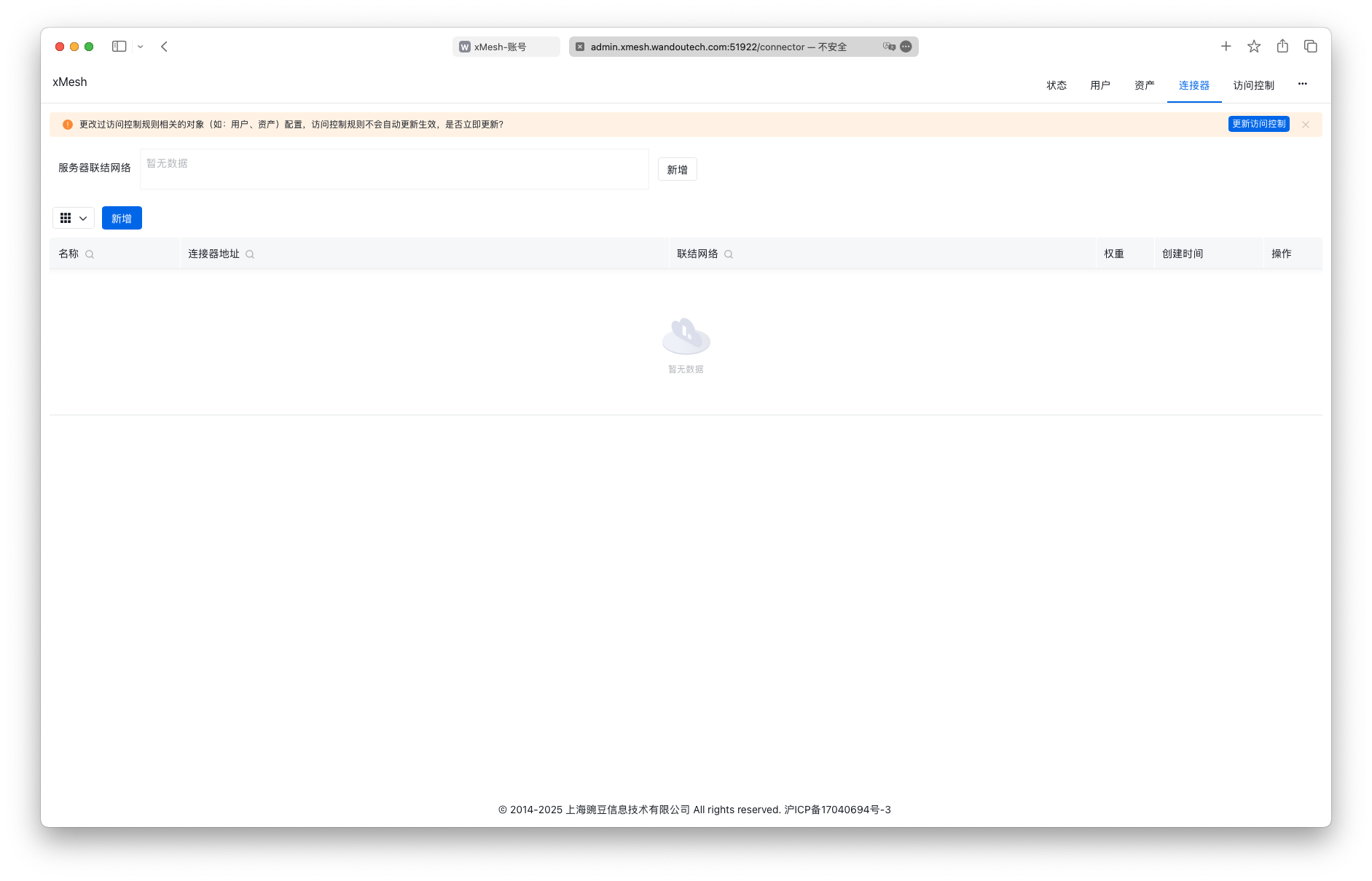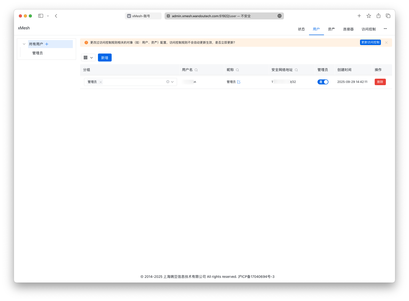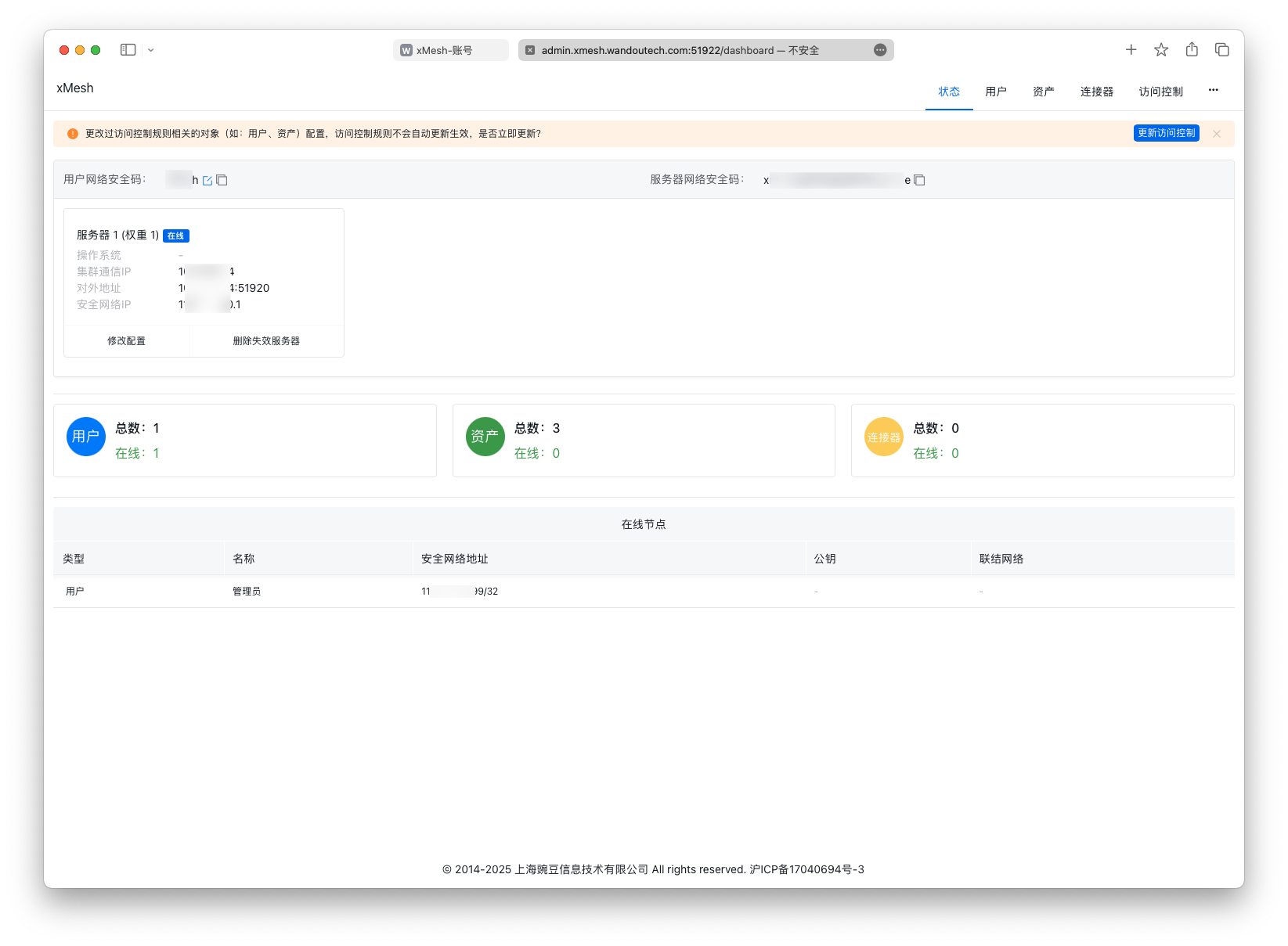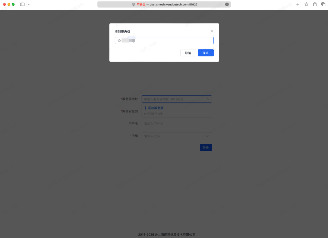 | 管理员登录地址 | http://admin.xmesh.wandoutech.com:51922/dashboard |