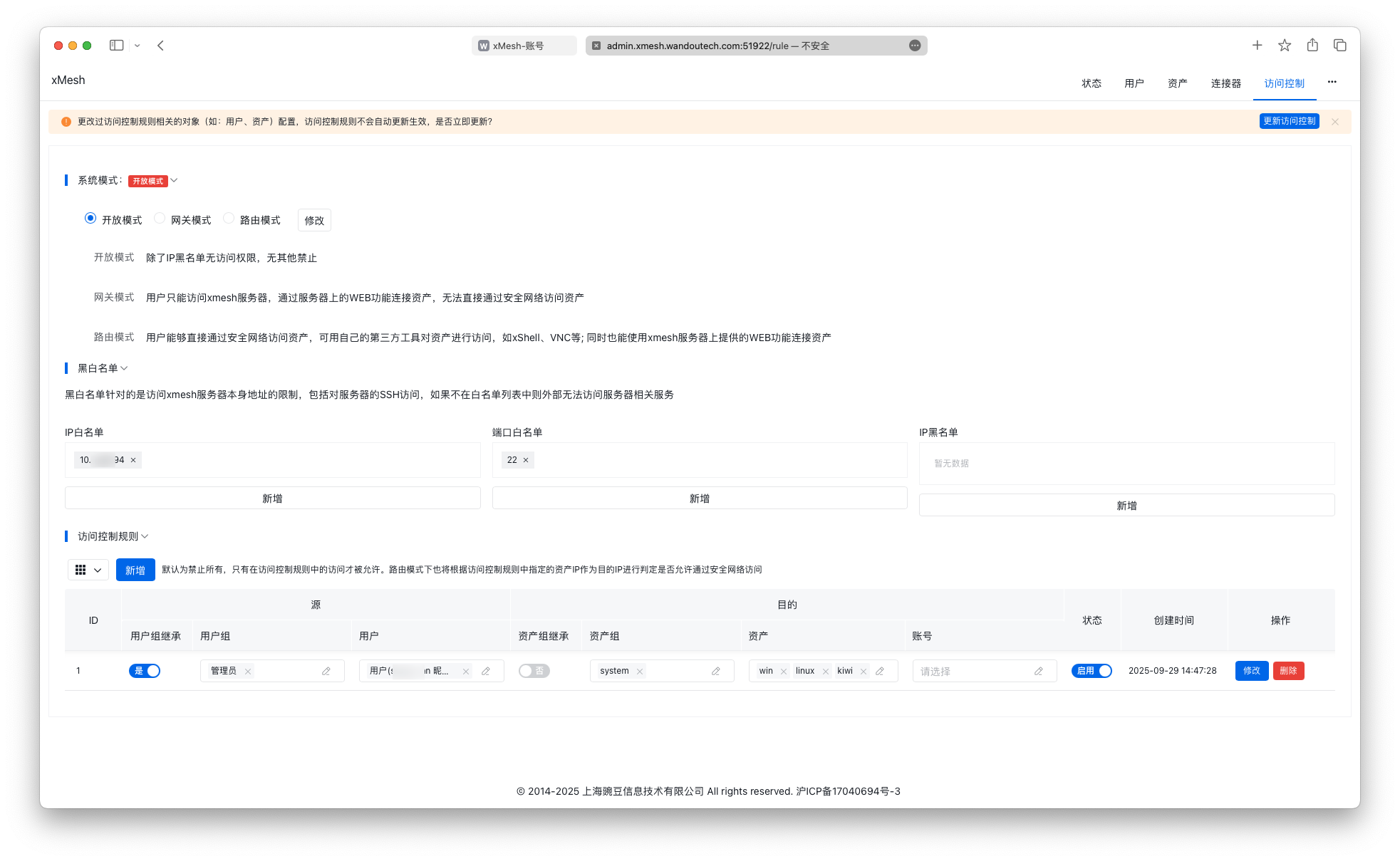 - 新增访问控制策略