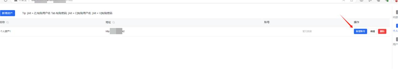 - 新增资产(账号)