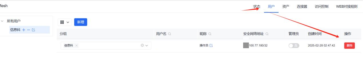 - 删除用户