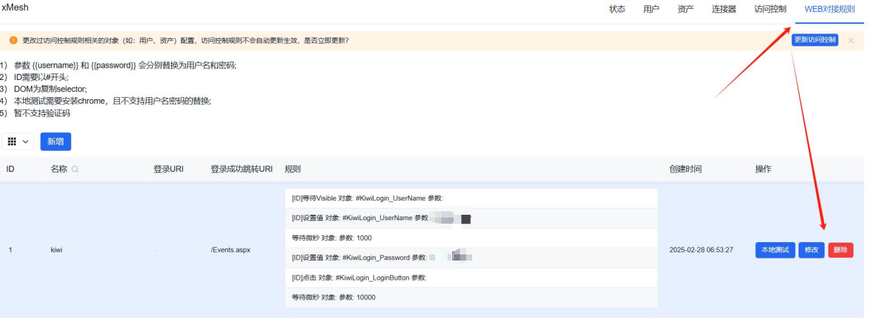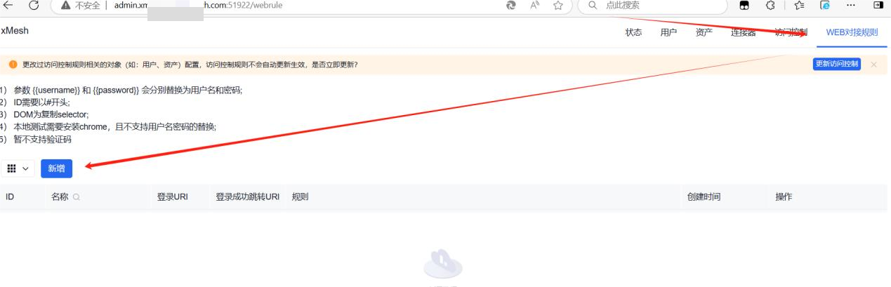 - Web对接规则功能模块用于实现对web资产的访问,可实现账号、密码代填