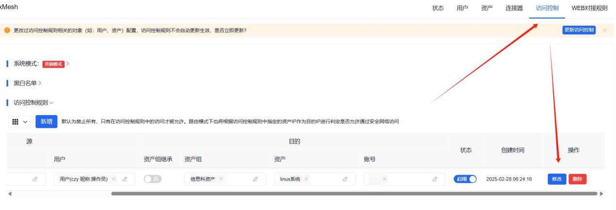 - 进入访问控制->对策略进行删除修改即可