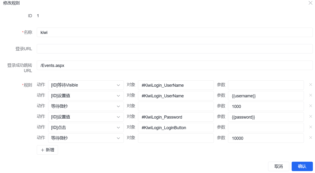 - 修改规则的账号密码参数(实际账号密码)