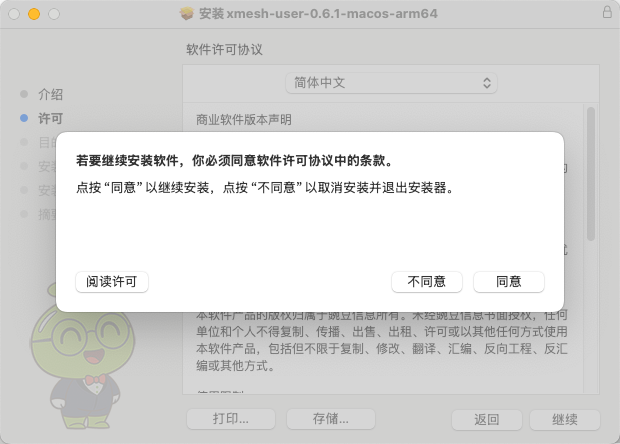 - 5.同意授权安装,便于xMesh初始化程序